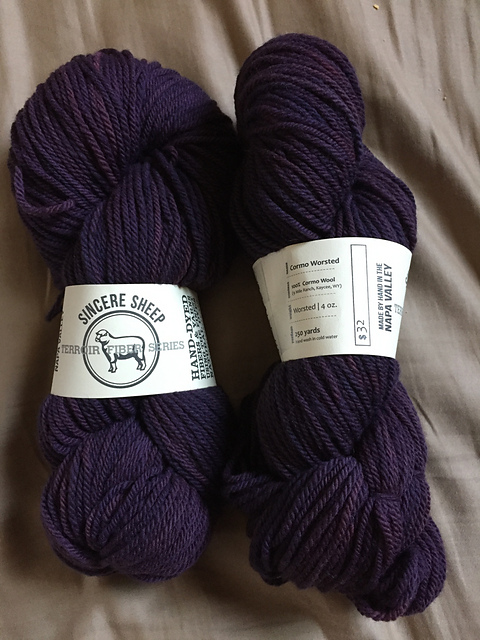 Two skeins of Cormo Worsted from Sincere Sheep. These are squoooooshy and want to be something wonderful when they grow up. I'm leaning toward fingerless mitts and a hat or maybe an infinity scarf/cowl of some sort.