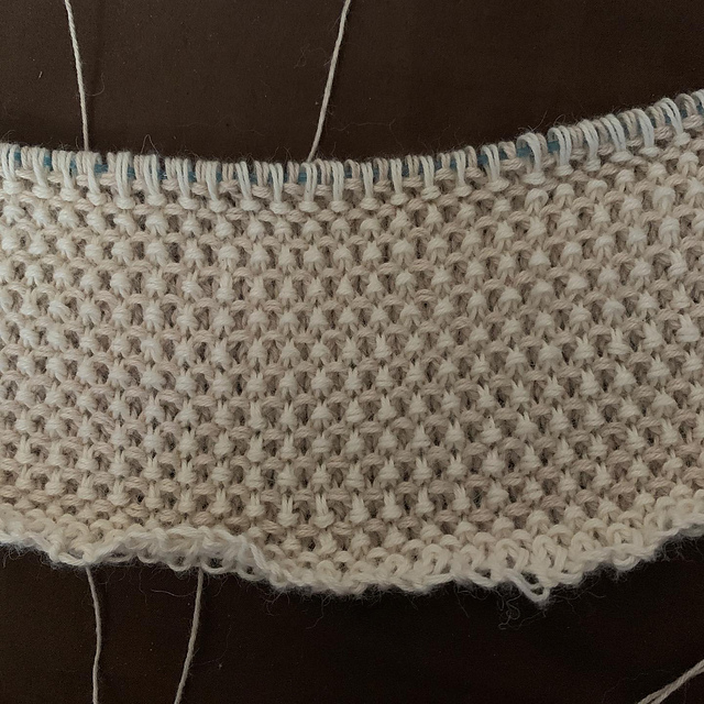 This is the most recent photo I have...I'm past the armholes and if I remember correctly, it fit, so I carried on. I don't think I'm much beyond this. I think I stopped because I hit the "new directions" section and I wanted to make sure I had everything figured out before I carried on again.