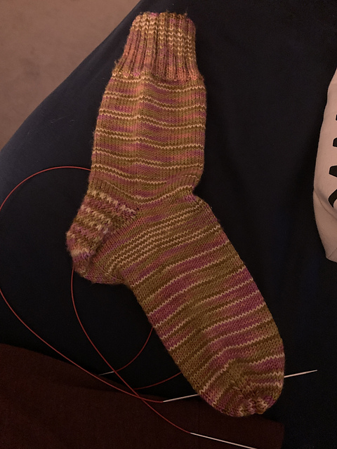 I also finished a sock the other night (#12 on the list) and started the second one. So that's plugging along, I guess. I was going to work on it last Monday when I went to knitting group but I knew I was close to the toe decreases and I really didn't want to be taking my sock and shoe off to try it on so I opted for other things.